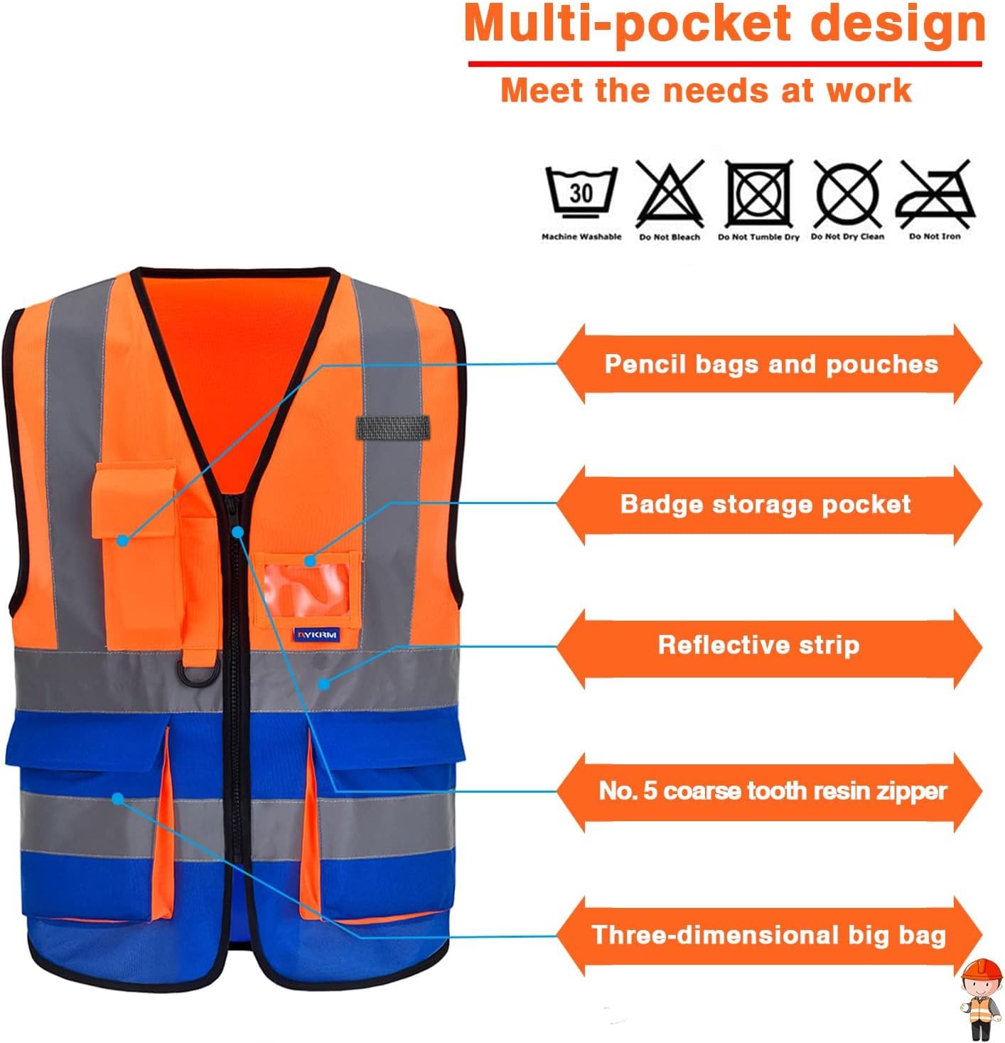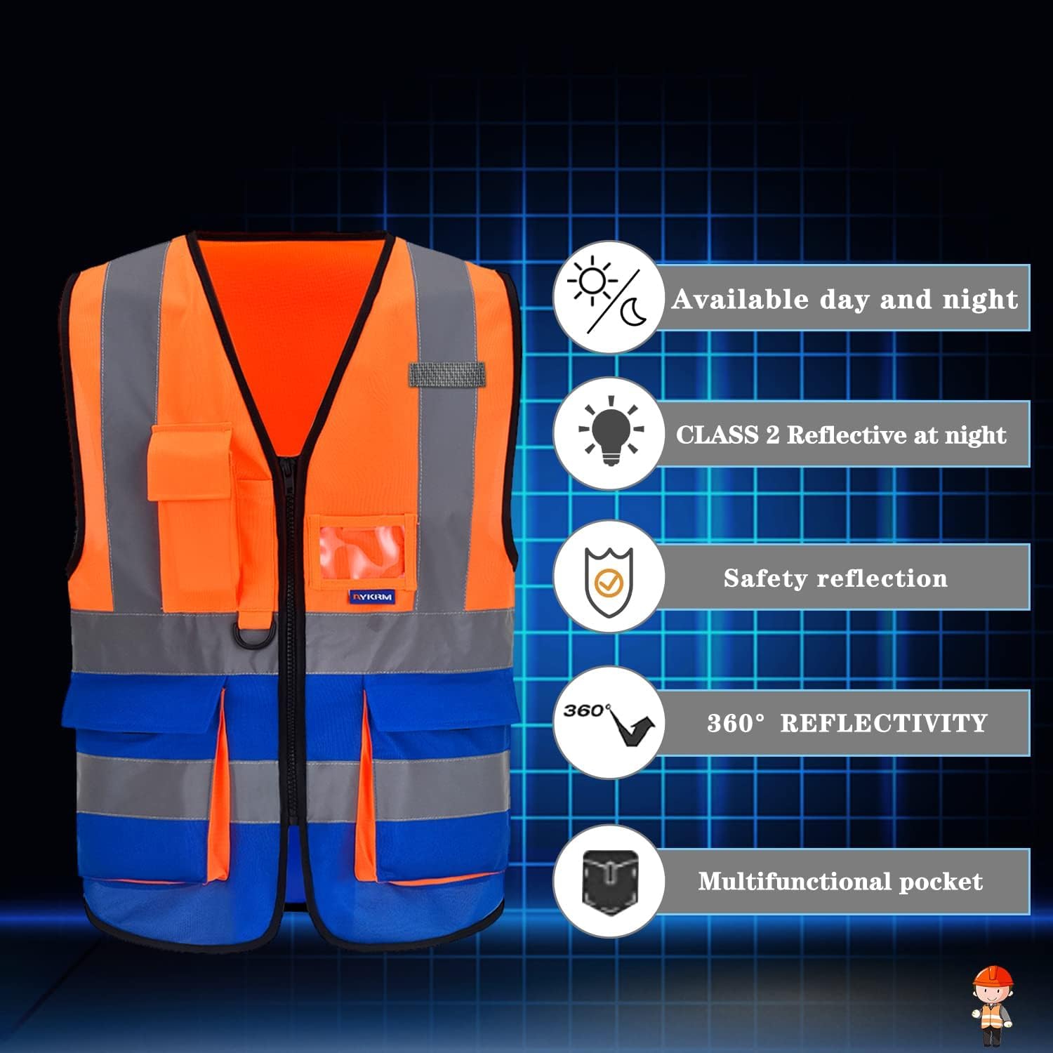 Orange and Navy Safety Vest A vest that combines orange and navy combines the benefits of both colors: 1. High visibility: The presence of orange (or fluorescent orange) ensures the wearer is visible and conspicuous, increasing their safety. 2. Job identification: The presence of orange and navy (often in the form of stripes or sections) helps identify the wearer or their role. For example: o A construction site supervisor's vest might be: the orange color reinforces their status as a supervisor, while the navy color ensures their safety among equipment and workers. o An airport worker's vest: They need to be visible (orange), but their official color or team identification is orange. o A traffic or security policeman's vest: To achieve high visibility while maintaining their corporate identity. Important Standard Specifications Regardless of color, vests must meet safety standards to ensure their effectiveness. • Reflective tape: It should contain reflective strips (often silver or white) that reflect the light of car headlights at night.