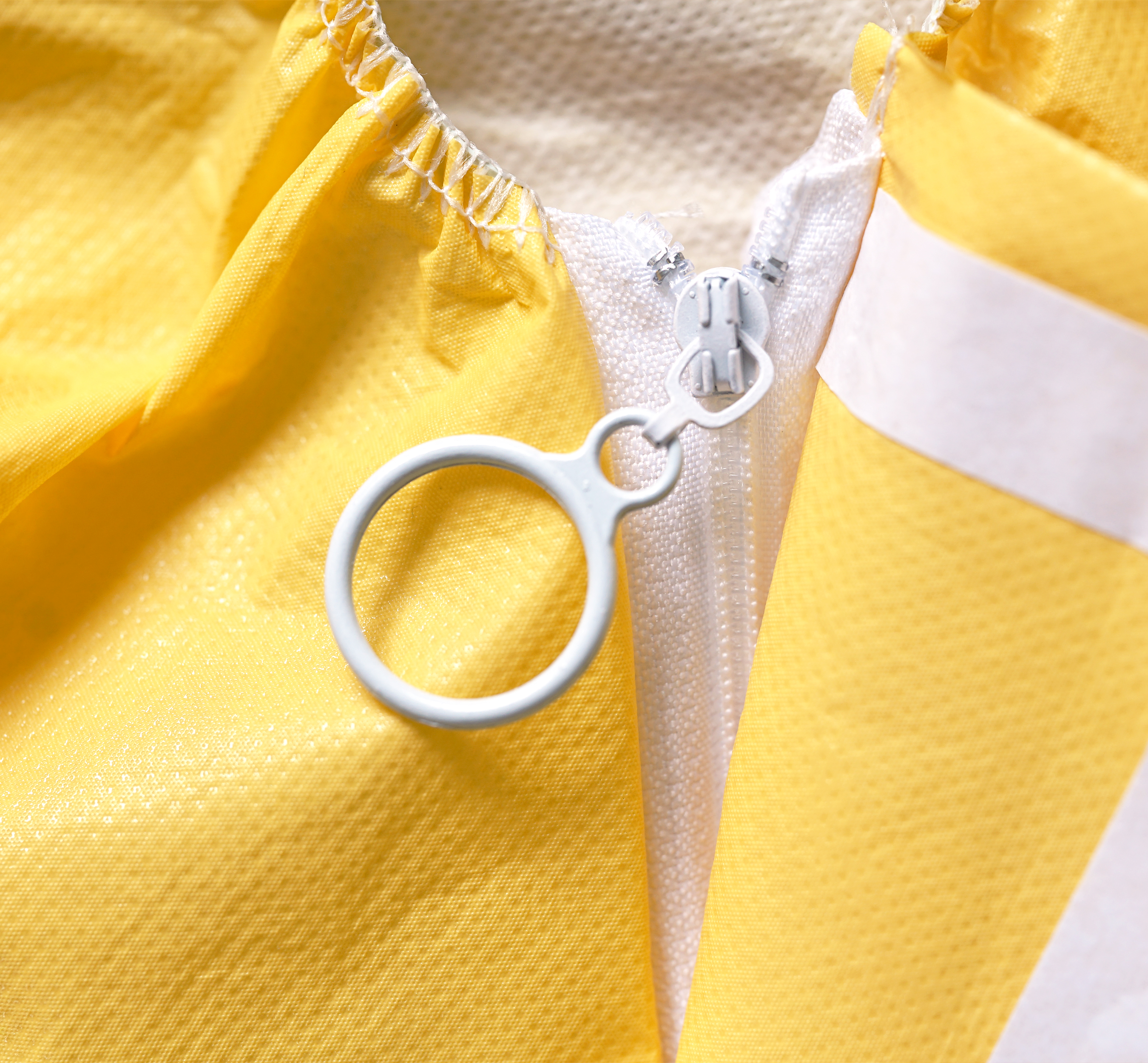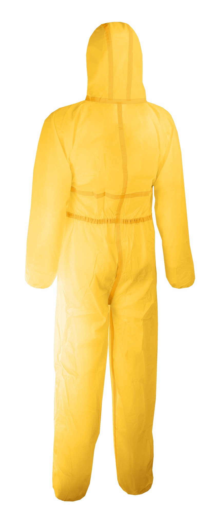 المادة: 100٪ بولي بروبيلين مع فيلم بوليثيلين (70 جم/م²). مسامي دقيق، مقاوم للماء. درزات مقاومة للماء بشريط لاصق حراري. غطاء رأس من 3 قطع. إغلاق بسحاب تحت شريط لاصق ذاتي. شدات مرنة (الخصر، الغطاء، المعصمين والكاحلين). حلقات للإبهام. اللون: أصفر. الحماية المتعددة المخاطر بفضل المادة (مسامية دقيقة، مقاومة للماء): حظر الجسيمات الصلبة والسائلة، والرشاشات والسوائل، والوكائل المعدية والتلوث الإشعاعي + خصائص مضادة للكهرباء الساكنة. مقاومة للماء بفضل فيلم البولي إثيلين والخياطات الملصوقة بشريط لاصق حراري. ضبط سريع وسهل بفضل شدّات مرنة. كيس بولي بسهم يوروي لتعليق يسمح بالعرض السهل في المتاجر المهنية.