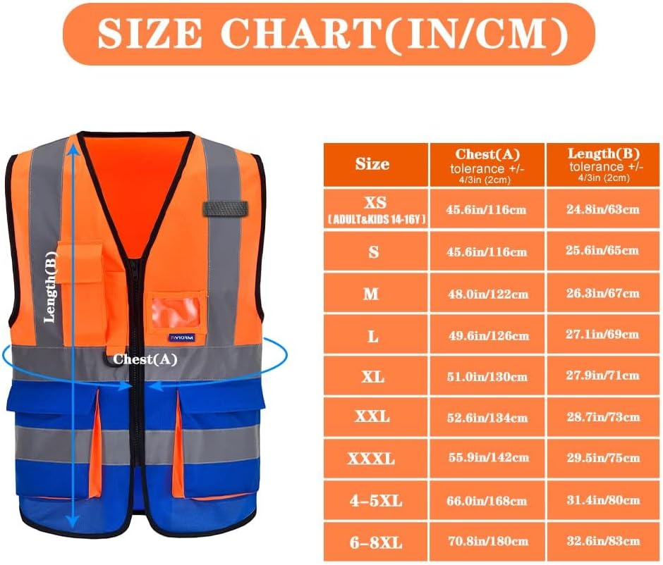Orange and Navy Safety Vest A vest that combines orange and navy combines the benefits of both colors: 1. High visibility: The presence of orange (or fluorescent orange) ensures the wearer is visible and conspicuous, increasing their safety. 2. Job identification: The presence of orange and navy (often in the form of stripes or sections) helps identify the wearer or their role. For example: o A construction site supervisor's vest might be: the orange color reinforces their status as a supervisor, while the navy color ensures their safety among equipment and workers. o An airport worker's vest: They need to be visible (orange), but their official color or team identification is orange. o A traffic or security policeman's vest: To achieve high visibility while maintaining their corporate identity. Important Standard Specifications Regardless of color, vests must meet safety standards to ensure their effectiveness. • Reflective tape: It should contain reflective strips (often silver or white) that reflect the light of car headlights at night.