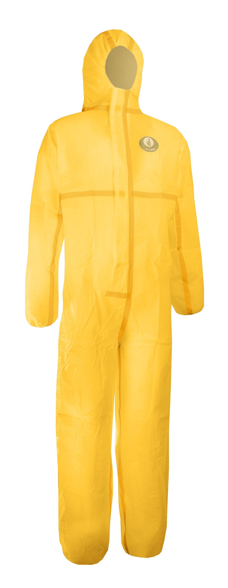المادة: 100٪ بولي بروبيلين مع فيلم بوليثيلين (70 جم/م²). مسامي دقيق، مقاوم للماء. درزات مقاومة للماء بشريط لاصق حراري. غطاء رأس من 3 قطع. إغلاق بسحاب تحت شريط لاصق ذاتي. شدات مرنة (الخصر، الغطاء، المعصمين والكاحلين). حلقات للإبهام. اللون: أصفر. الحماية المتعددة المخاطر بفضل المادة (مسامية دقيقة، مقاومة للماء): حظر الجسيمات الصلبة والسائلة، والرشاشات والسوائل، والوكائل المعدية والتلوث الإشعاعي + خصائص مضادة للكهرباء الساكنة. مقاومة للماء بفضل فيلم البولي إثيلين والخياطات الملصوقة بشريط لاصق حراري. ضبط سريع وسهل بفضل شدّات مرنة. كيس بولي بسهم يوروي لتعليق يسمح بالعرض السهل في المتاجر المهنية.